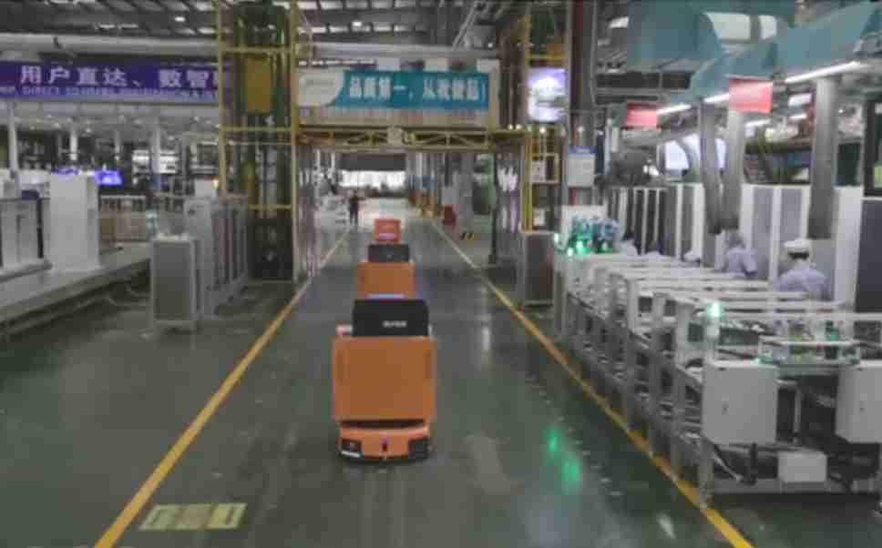 为车载冰箱物流配送打造的智能解决方案,,,,包含产中物流通过潜伏举升AMR搬运至线边,,,,产后成品物流智能仓储,,,,流程包含产中物流智能齐套入库,,,线边安灯叫料AMR智能配送至线边,,,成品入库、、、、出库,,,通过无人堆高车机器人,,智能仓储管理替代人工作业管理,,,,实现更高存储、、、更高效率、、、更具柔性化的解决方案。。。